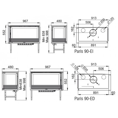 Insertable leña en esquina dcha o izq BRONPI SERIE PARIS 90